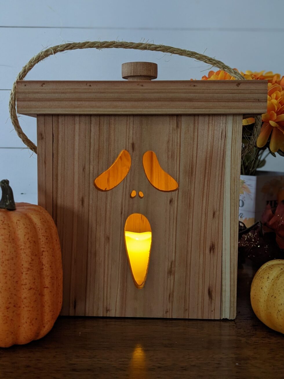 Bring Halloween to life with our cedar Jack-o’-lanterns! Each features unique, CNC-cut designs—from goofy ghosts to spooky pumpkins—and comes with a safe, battery-operated candle inside. Enclosed and weather-resistant, they’re perfect for adding a warm, festive glow indoors or on your porch. Plus, a handy handle makes them easy to carry and display anywhere!