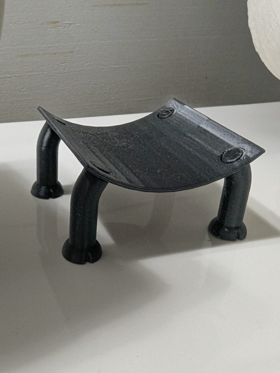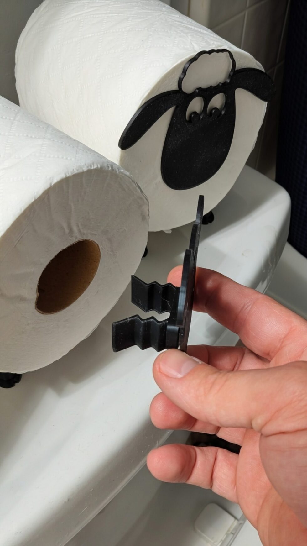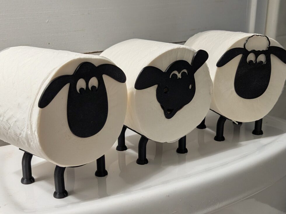 Thoughtfully designed and 3D printed, the sheep’s head slides neatly into the center of the toilet paper roll, while the roll rests comfortably along its belly. Four sturdy feet keep it standing securely on the back of your toilet or bathroom counter. No mounting, no hardware — just set it in place and it’s ready to use.