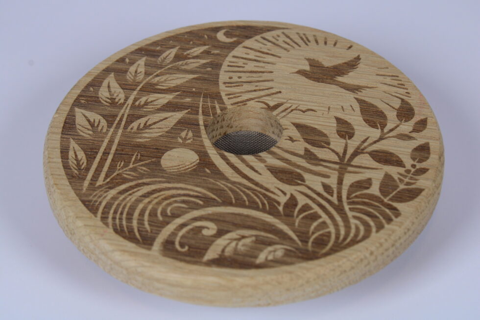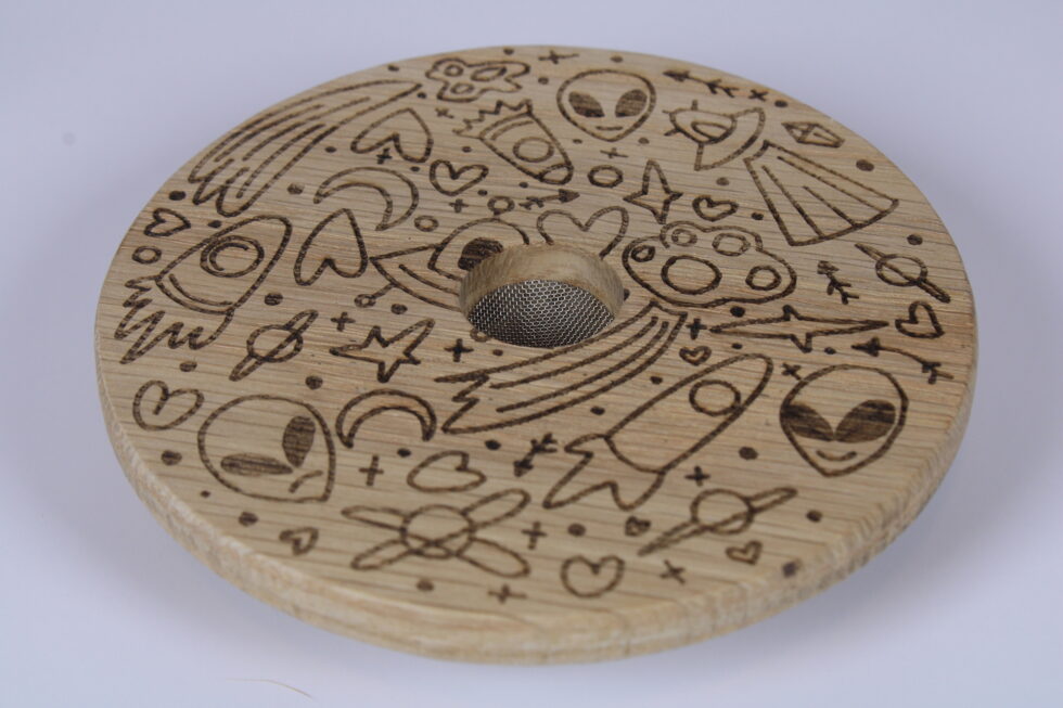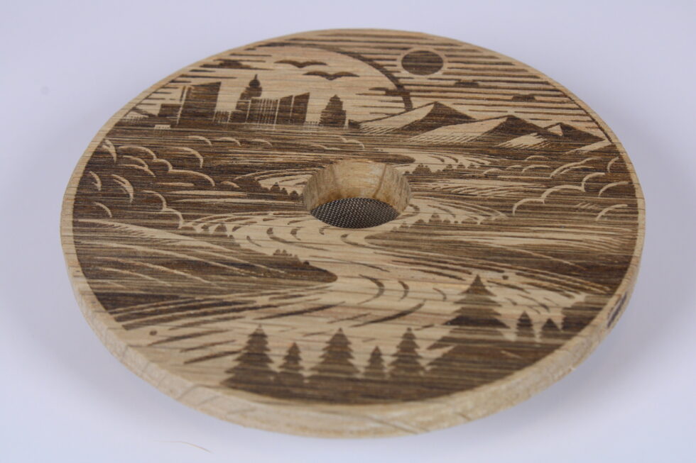 Take your cocktails up a notch with this White Oak Whiskey Smoker! Made from sturdy white oak and CNC-cut for a perfect fit, it comes with cool laser-engraved designs you can pick from to match your style. Just grab the included tin of oak shavings, pop in a screen (you get two extras!), and add a smoky flavor that makes any drink taste next-level.